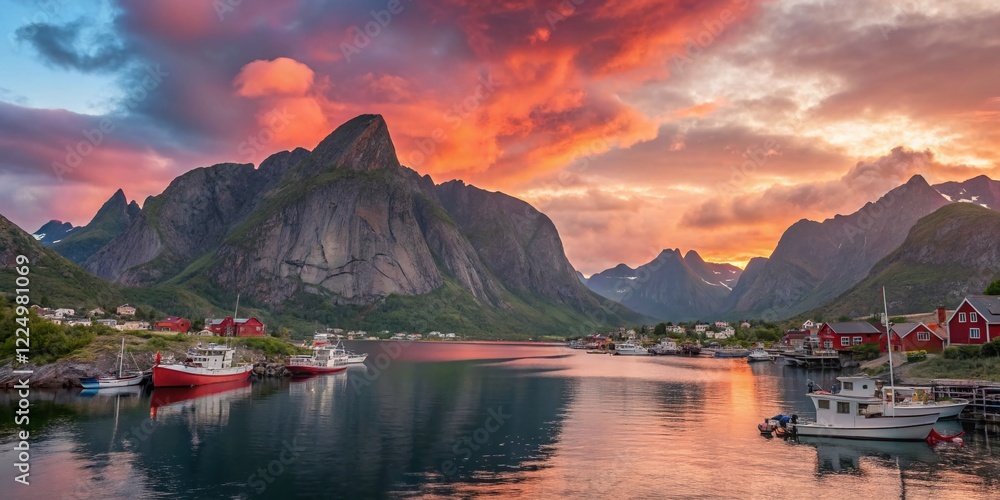 Surreal Lofoten Sunset: Dreamlike Colors Over Reine, Moskenes, Norway #1224981069