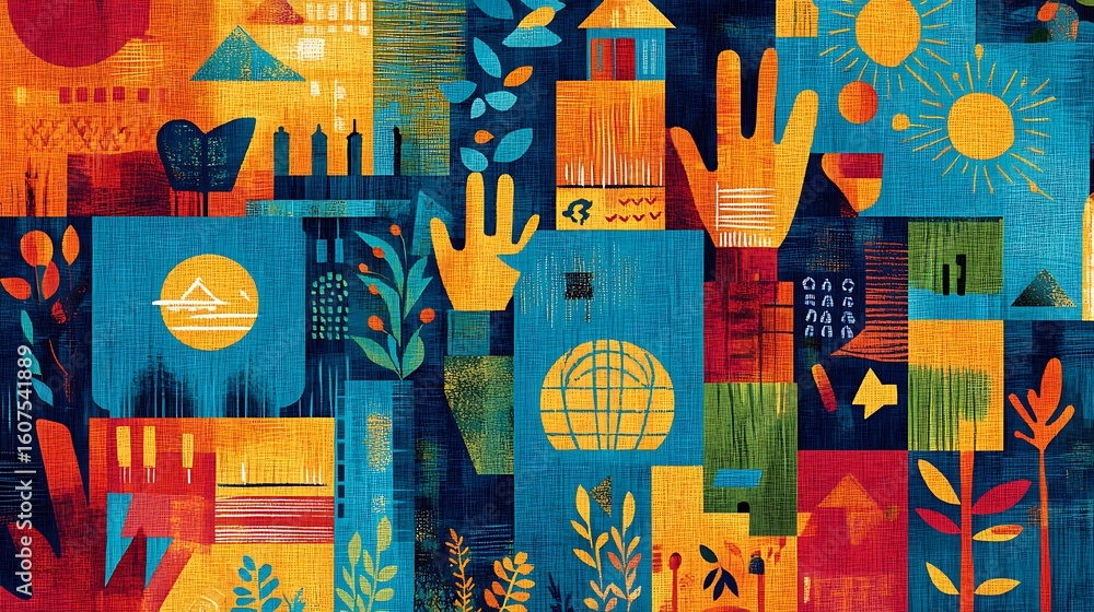 Sustainable development icons weaving into vibrant fabrics #1607541889