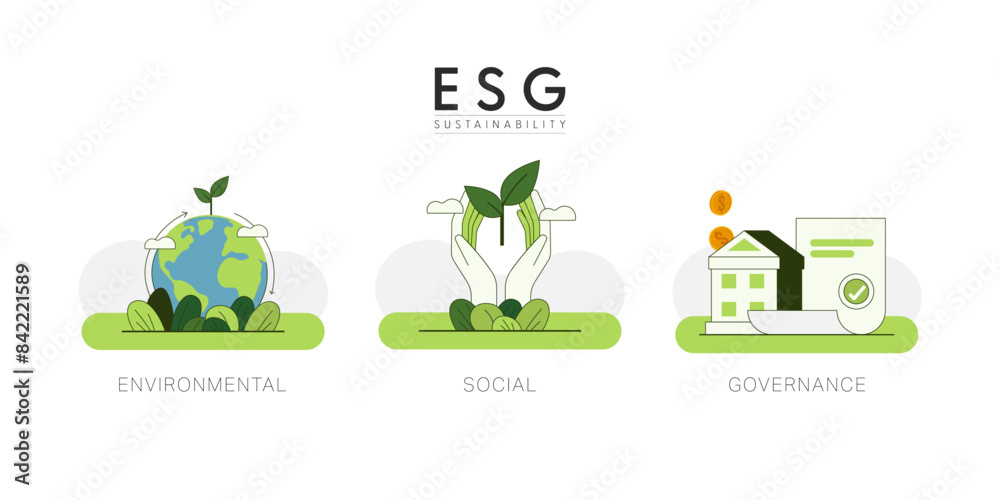 Sustainable of Green ecology and environment concept. ESG as environmental, social and governance concept. Flat Vector illustration. #842221589