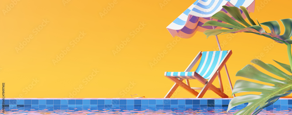 Swimming pool with beach chair and umbrella. Summer vacation concept. 3d rendering #784971612