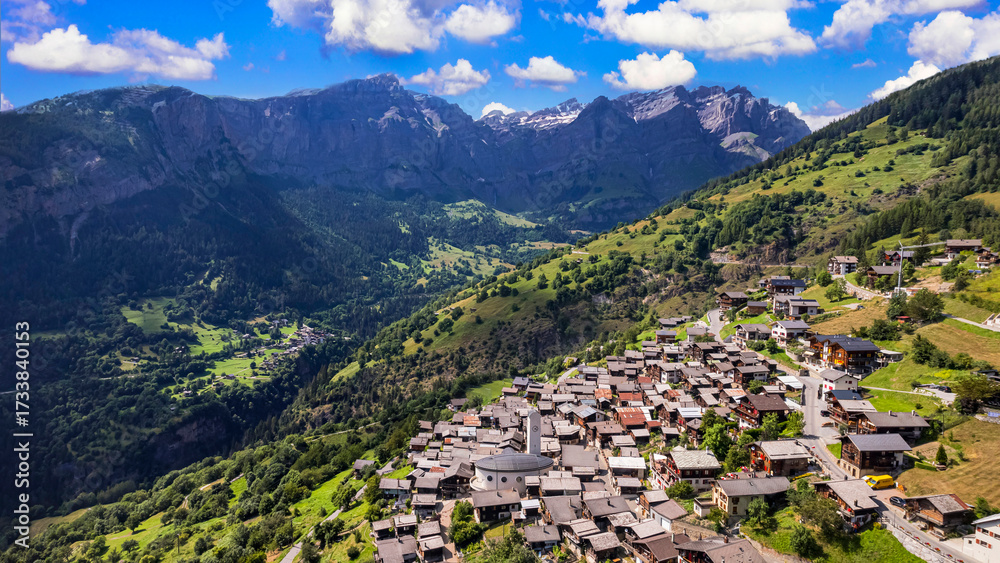 Switzerland scenic places. Albinen is one of the most beautiful mountain villages in the Valais canton. Swiss tourism #1733840153