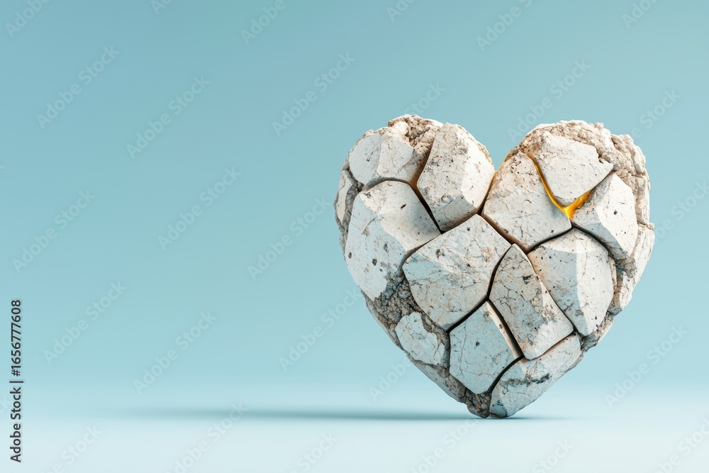 Symbolic representation of a cracked stone heart in a minimalist setting highlighting emotional rigidity and resilience #1656777608