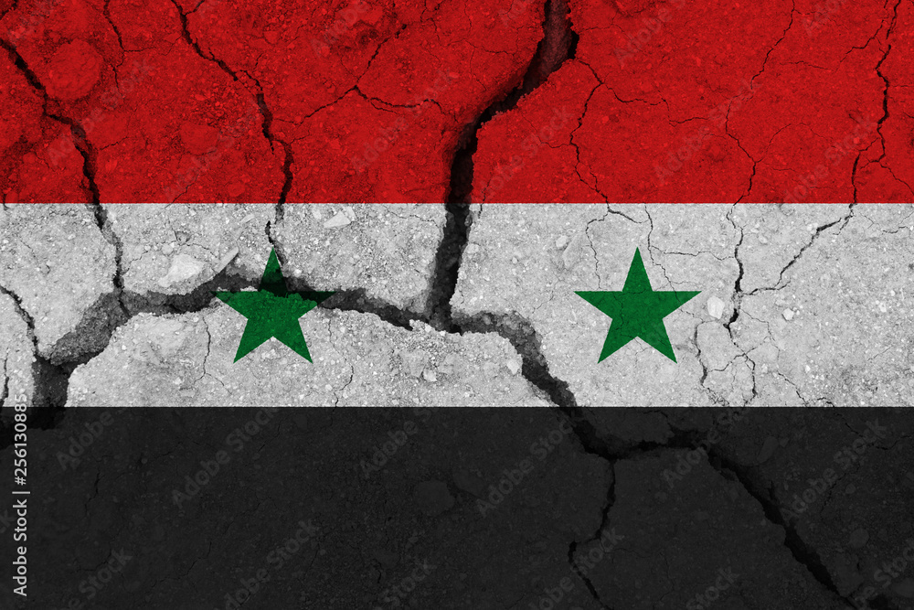 syria flag on the cracked earth #256130885