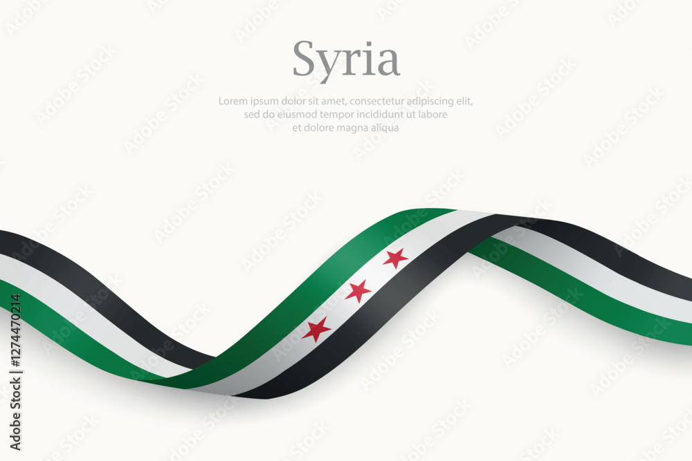 Syria flag on Waving ribbon #1274470214