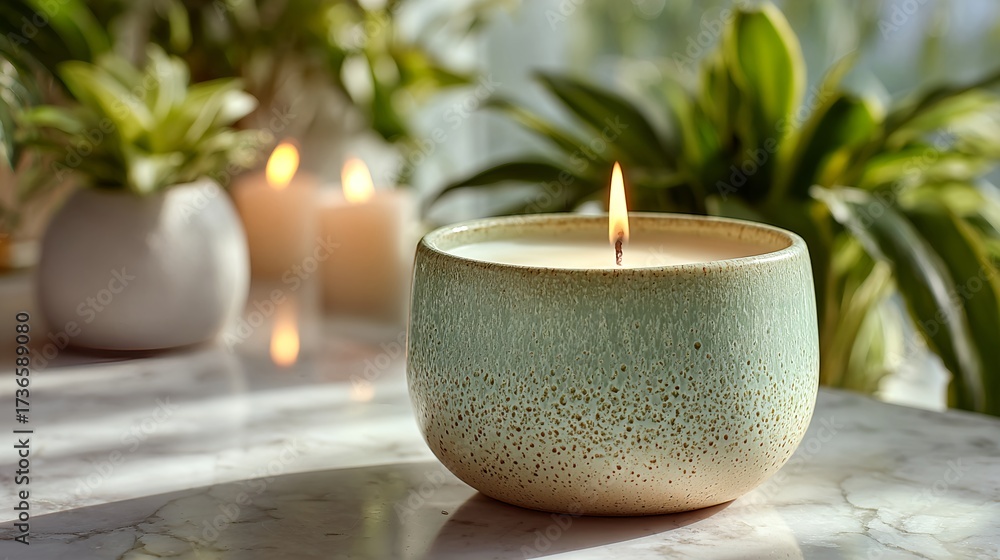 Tactile Candle Arrangement in Handcrafted Natural Bowl – Immersive Serveware Visual for Sustainable Wellness and Eco-Luxury Branding #1736589080