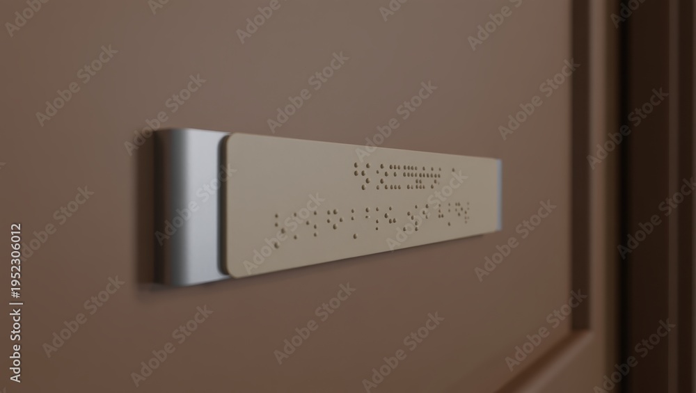 Tactile door sign with Braille mounted on brown doorway for accessibility #1952306012