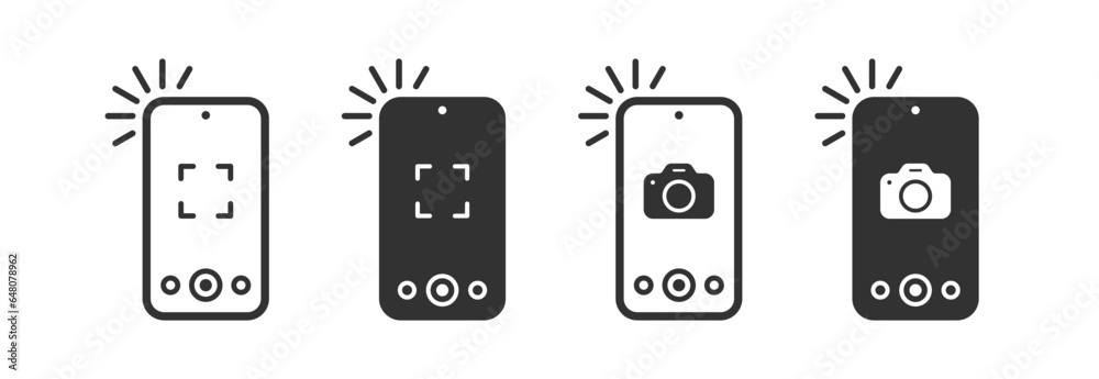Take photo icon. Camera signs. Photography flash symbol. Phone picture symbols. Photocamera icons. Black color. Vector sign. #648078962