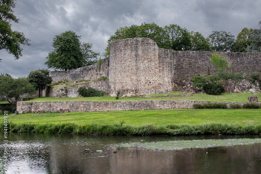 Étang dans le parc municipal face aux ruines du château de Montaigu. #1941407821