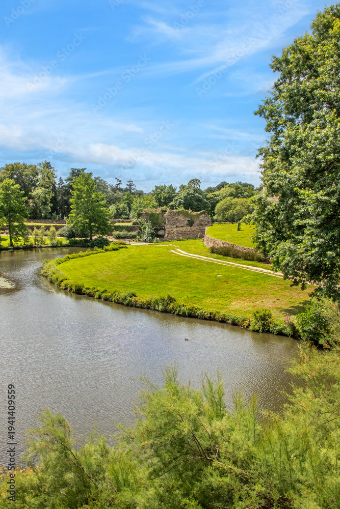 Étang dans le parc municipal face aux ruines du château de Montaigu. #1941409559