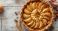 Tart and sweet apple pie divided to reveal cooked apples #1969331419