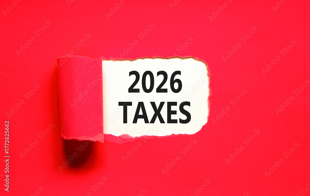 2026 taxes new year symbol. Concept words 2026 taxes on beautiful white paper. Beautiful red paper background. Business and 2026 taxes new year concept. Copy space. #1772625662