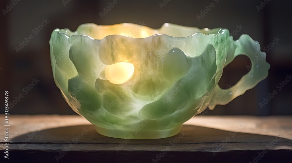 Tea cup carved from glowing jade #1830349878
