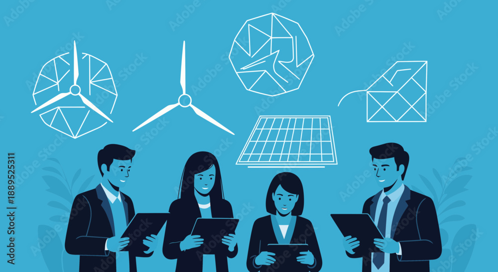 Team of professionals collaborating on sustainable energy solutions for the future. #1889525311