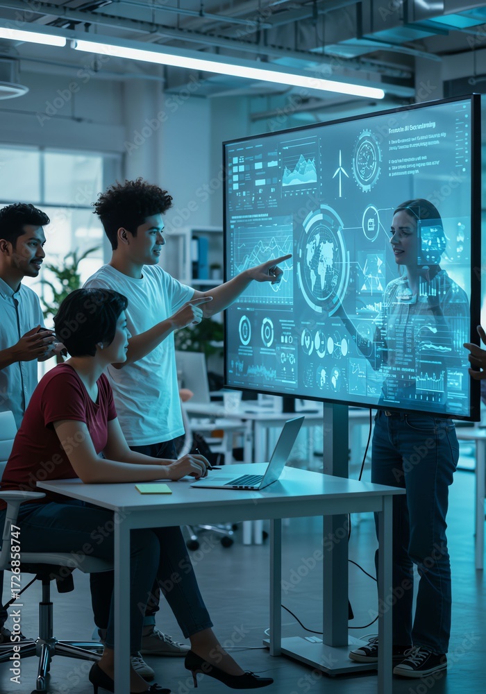 Team of Young Professionals Analyzing Data on Digital Interactive Screen in Modern Office #1726858747