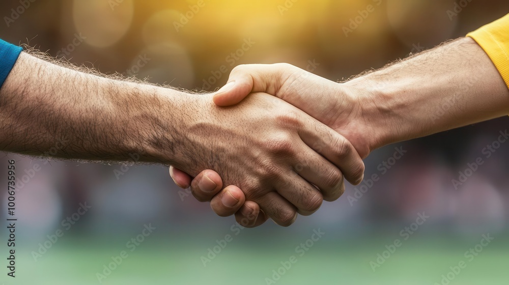 Teams shaking hands before the start of a soccer tournament final, sportsmanship and respect, soccer, tournament, tradition #1006735956