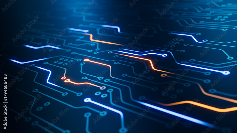 Technology circuit board - AI circuit board background. Computer motherboard. 3d illustration #1794686483