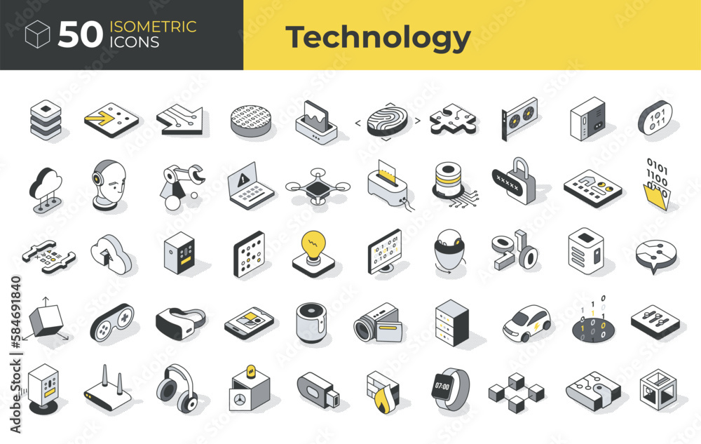 50 Technology Isometric Icons #584691840