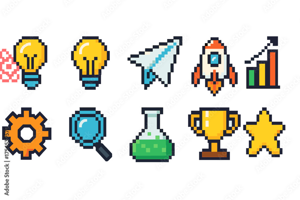 Technology, science 3d icon set. Innovation, creativity, growth pixel art collection #1754539575