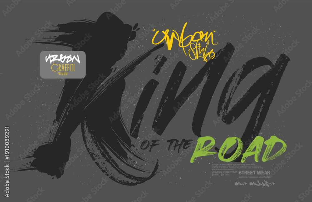tees art, KING slogan print, Urban graffiti typography slogan print, grunge street urban style quote typography. hand draw art grunge, Tees graphics print design.eps #1910089291