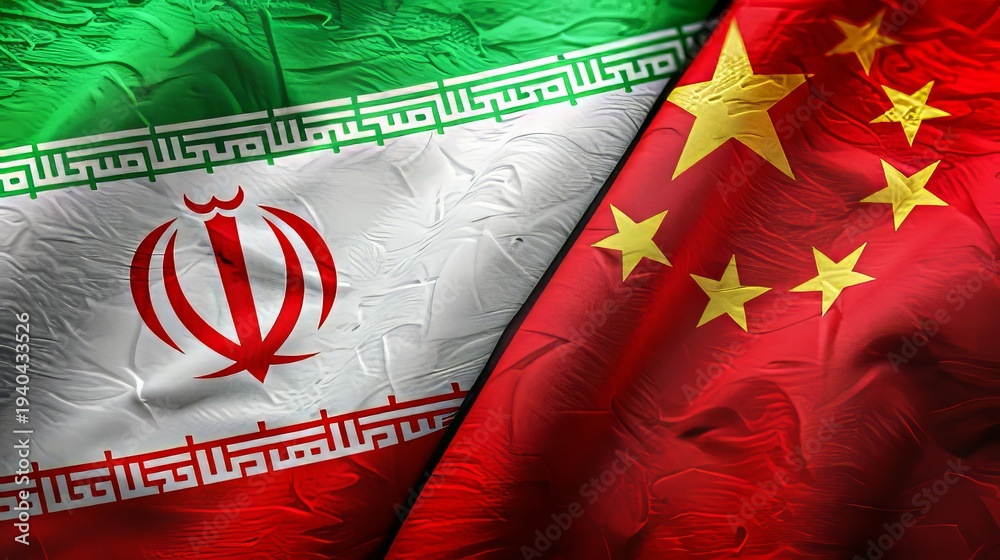 Textile fabric featuring the flags of iran and china a unique cultural blend in fabric design #1940433526