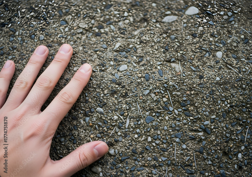 Textured ground surface with hand close up detail #1774751870