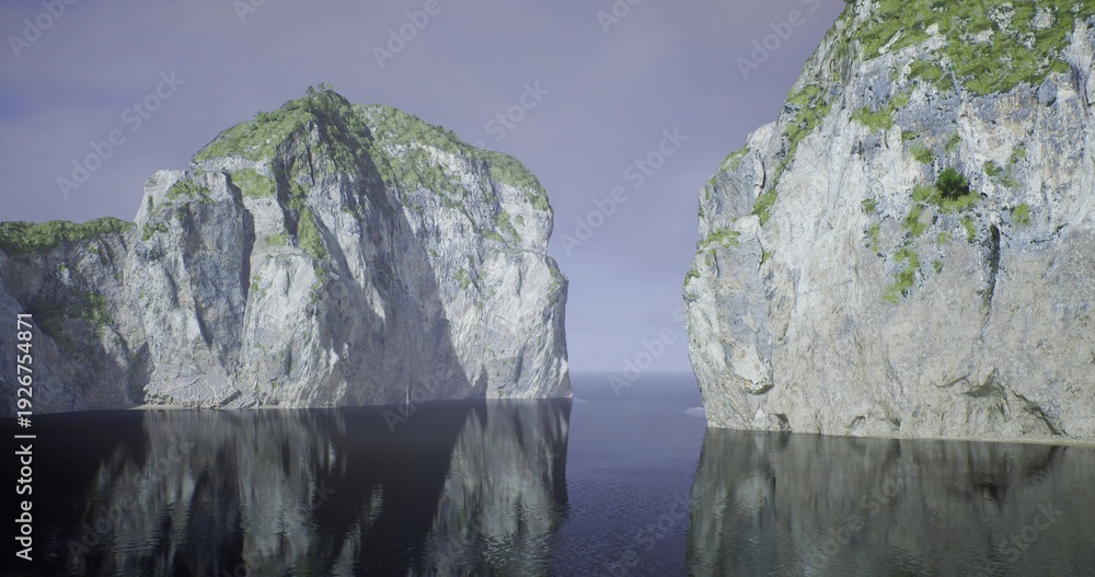 textured limestone cliff face showing stratification, close details of layers, mineral veins and weathered pockets, moss and lichen scattering surfaces, useful #1926754871