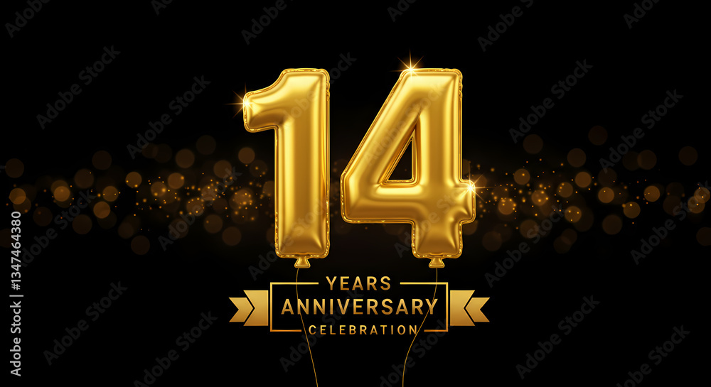 14th Anniversary Gold Balloons Sparkle #1347464380