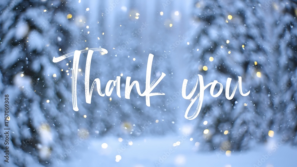 Thank you card in winter forest background with bokeh lights effect #1757069308