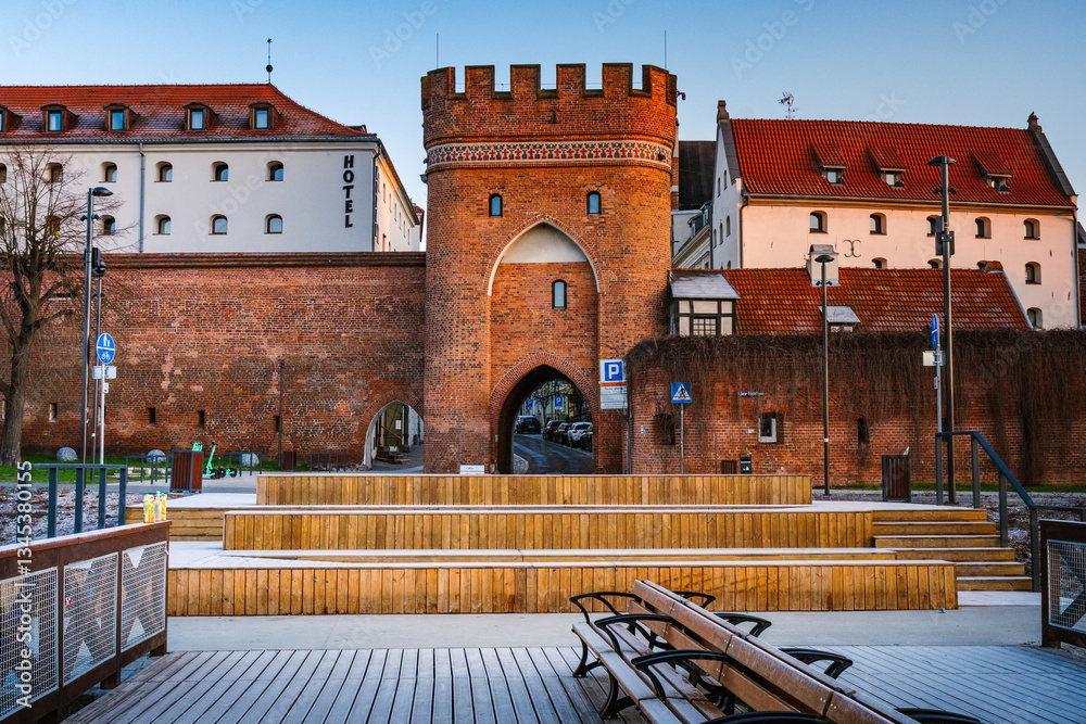 the beautiful promenade along the Vistula River in Torun, a UNESCO World Heritage Site #1345380155