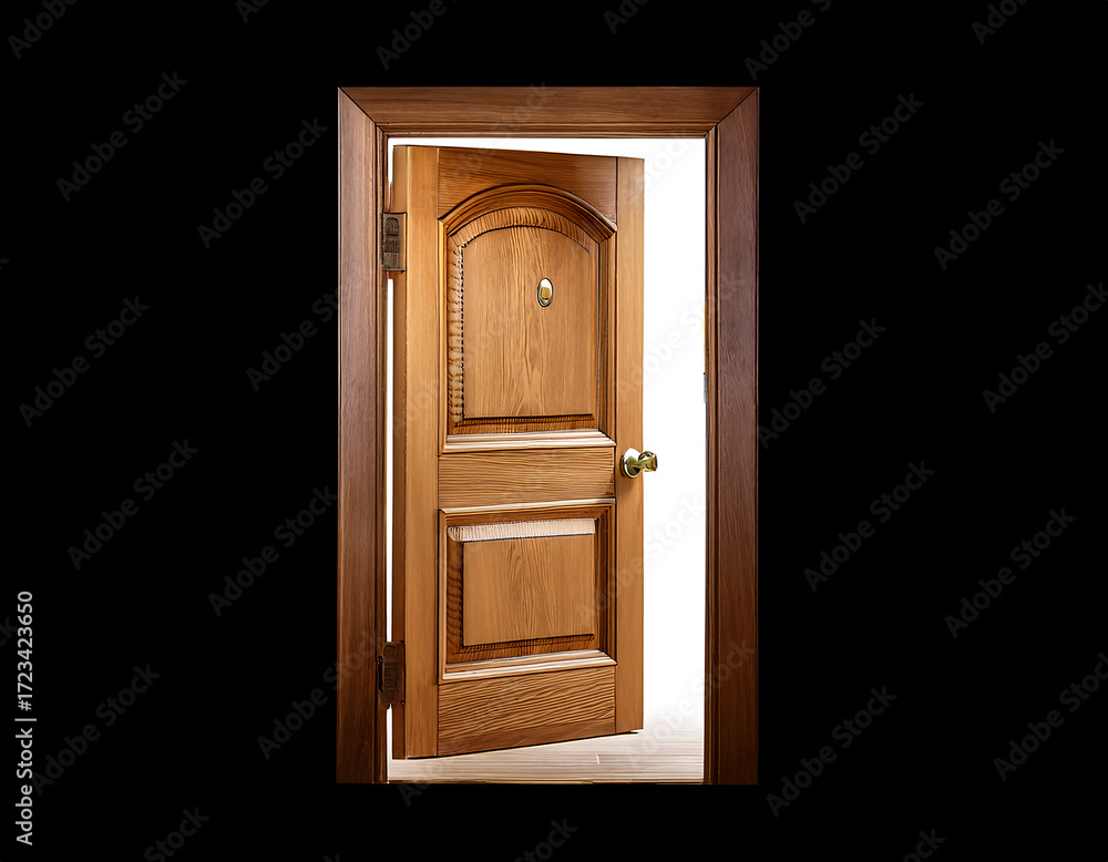 The elegant oak door is slightly open, indicating opportunities and changes on a solitary #1723423650