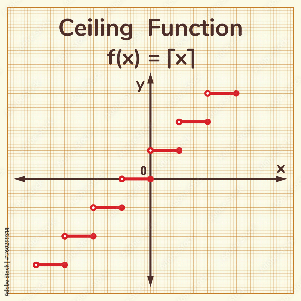 The graph of a ceiling function. Education. Science. School. Vector illustration. #1760299314