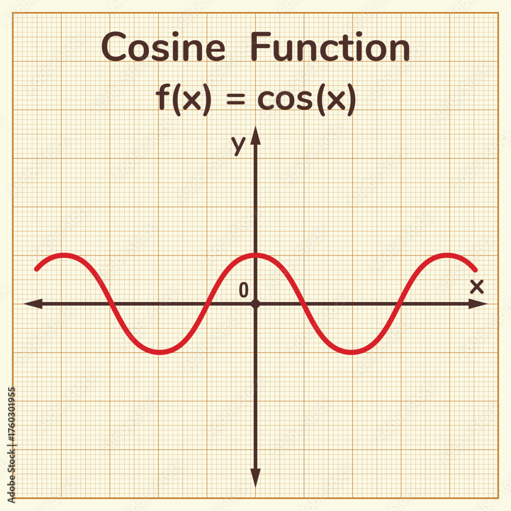The graph of a cosine function. Education. Science. School. Vector illustration. #1760301955
