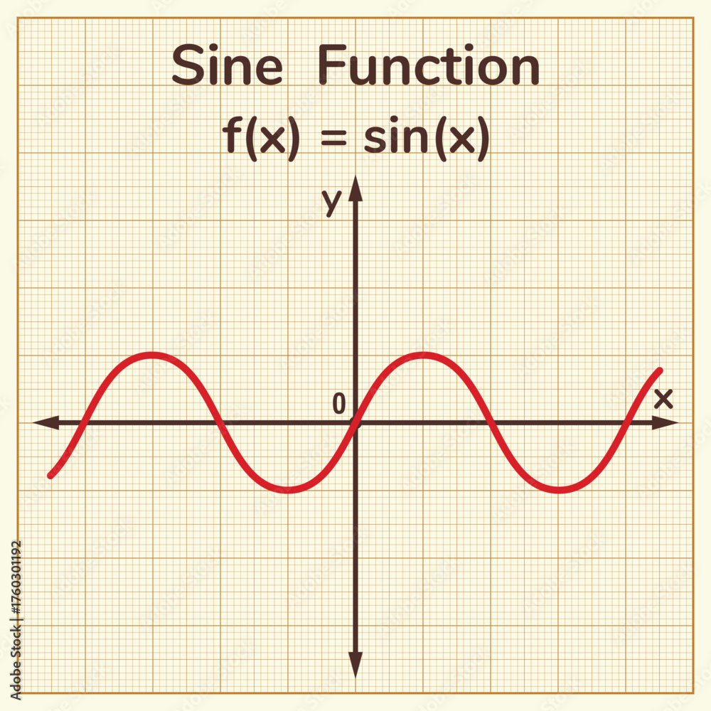 The graph of a sine function. Education. Science. School. Vector illustration. #1760301192