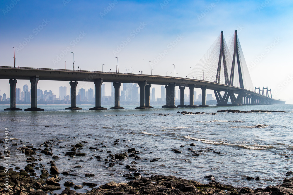 The iconic Bandra Worli Sea Link (Rajiv Gandhi Sea Link) connecting South Mumbai with Bandra and the Western Suburbs #392715913