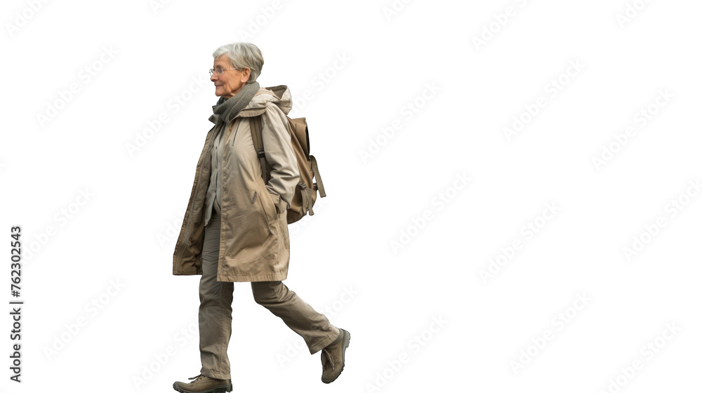The modern elderly woman walks with a light gait. PNG file of isolated cutout object on transparent background. #762302543