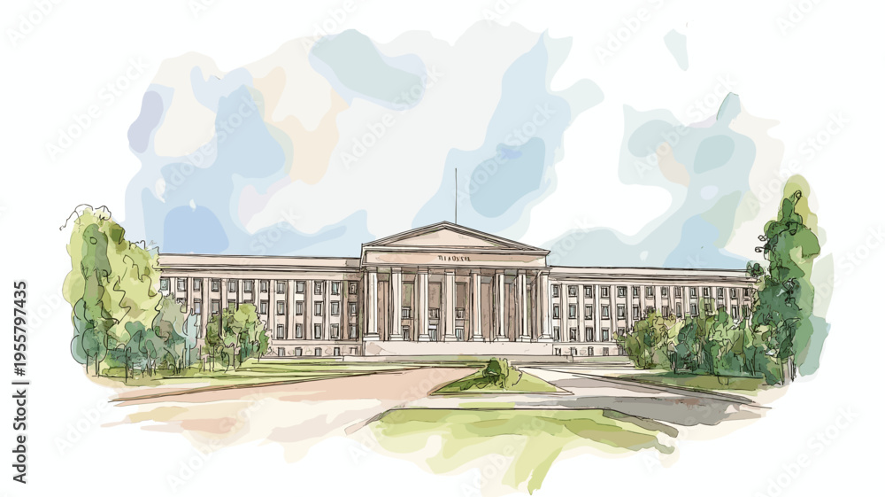 The Pentagon. The Pentagon hand drawn watercolor illustration #1955797435