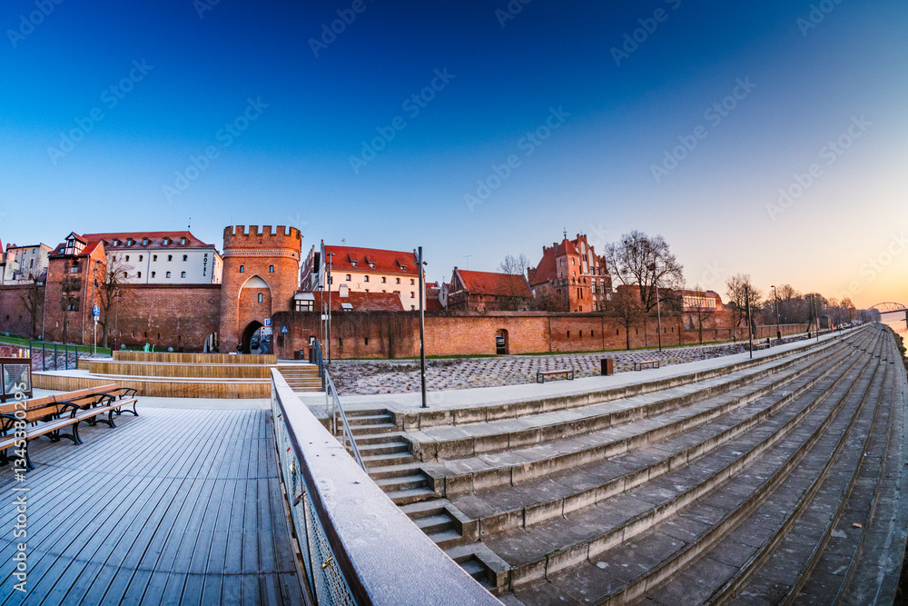 the serene promenade along the Vistula River in beautiful Torun, a UNESCO World Heritage Site #1345380295