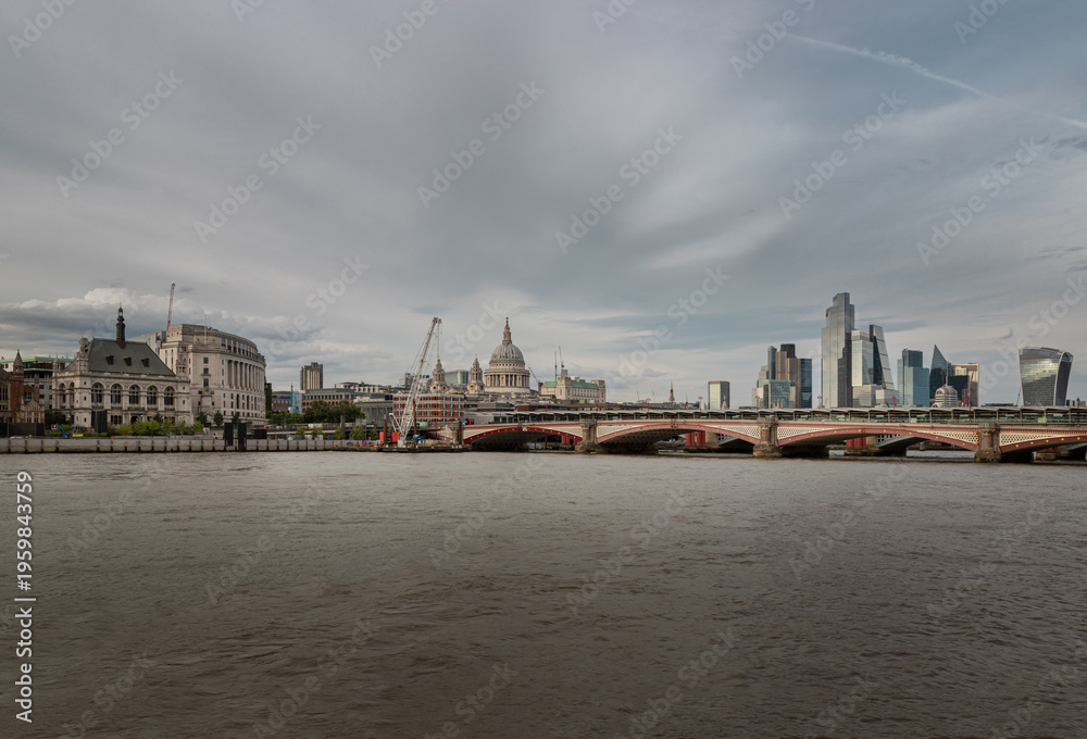 The timeless majesty of the London skyline unfolds across the River Thames, where the grand dome of St. Paul'™s Cathedral rises as a serene, neoclassical sentinel amidst a forest of contemporary #1959843759