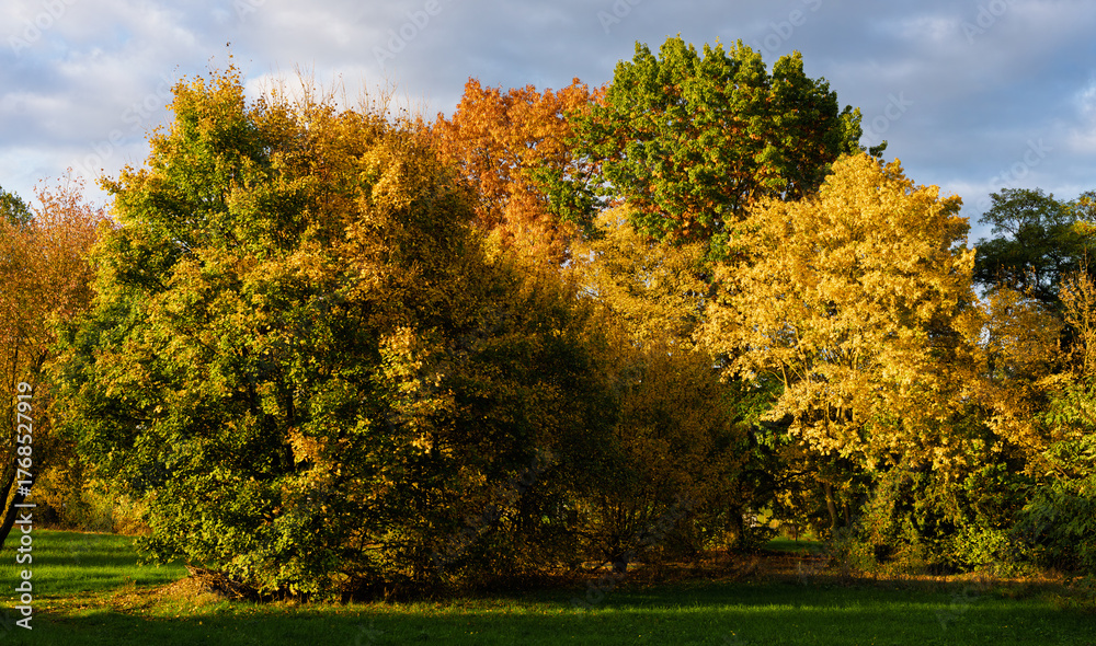 The Vibrant and Colorful Autumn Foliage in a Beautiful Sunny Park Setting is Breathtaking #1768527919