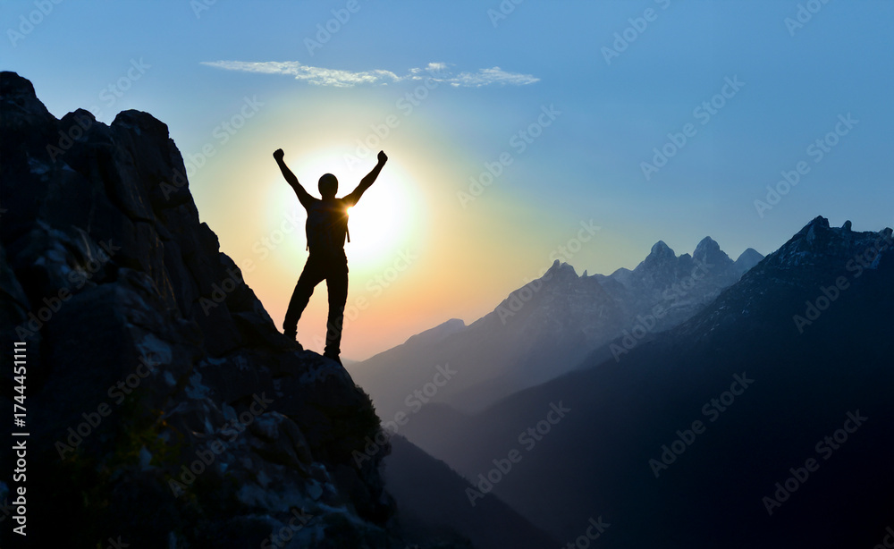 The victory of a person with fighting spirit, determination, strength and success #1744451111