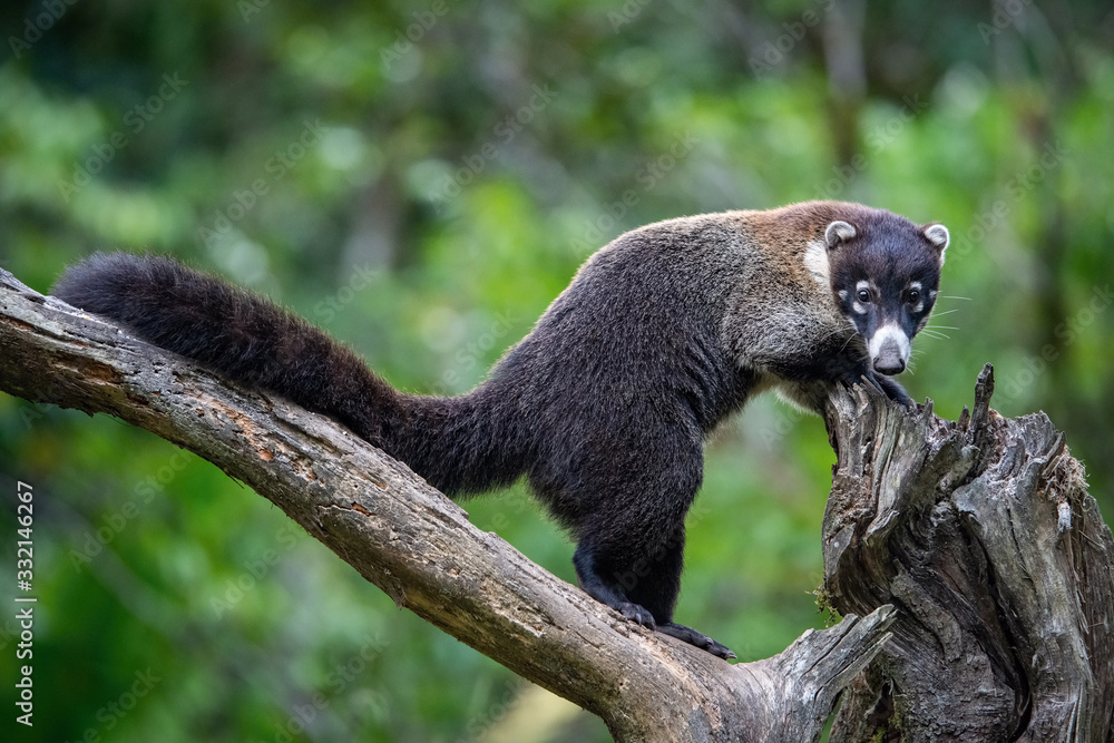 The white-nosed coati, Nasua narica The mammal is standing in the rain forest America Costa Rica Wildlife scene from America nature. .. #332146267
