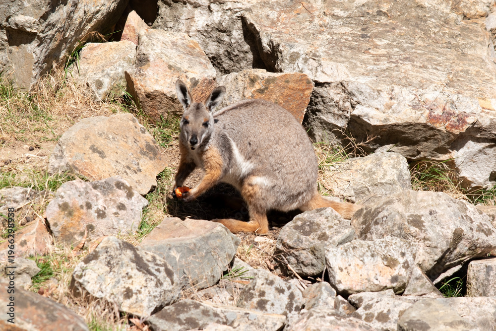 the yellow footed rock wallaby is eating a carrot #1966298938