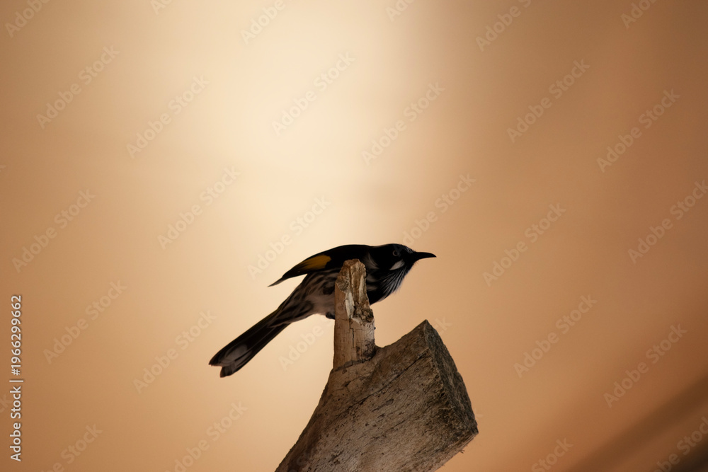 the yellow tufted honeyeater is perched on a tree stump #1966299662