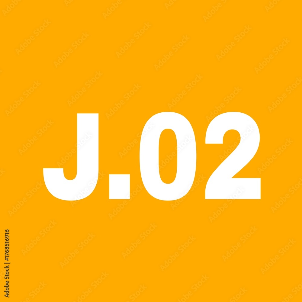 This image shows a bright orange background with bold white text displaying J. 02 #1768516916