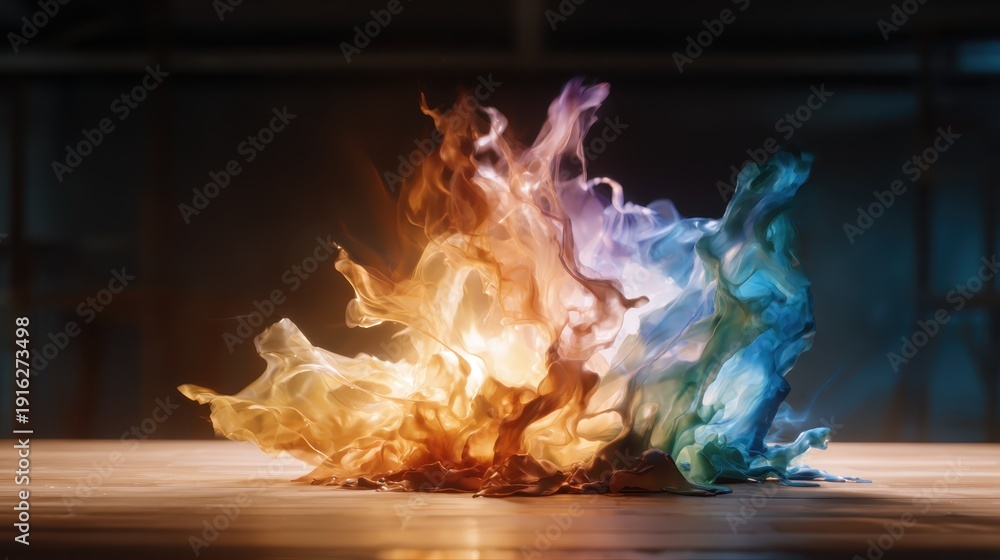 This mesmerizing image captures colorful flames swirling with energy, showcasing the beauty and dynamic nature of fire in an artistic representation of movement and intensity. #1916273498