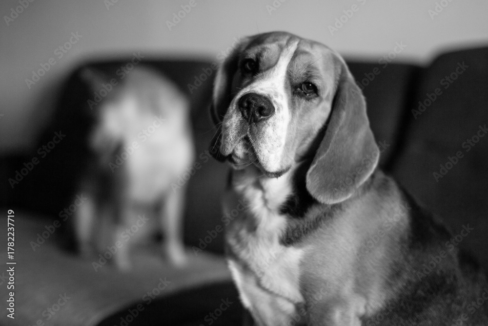 Thoughtful Beagle Dog Portrait in Black and White #1782237719