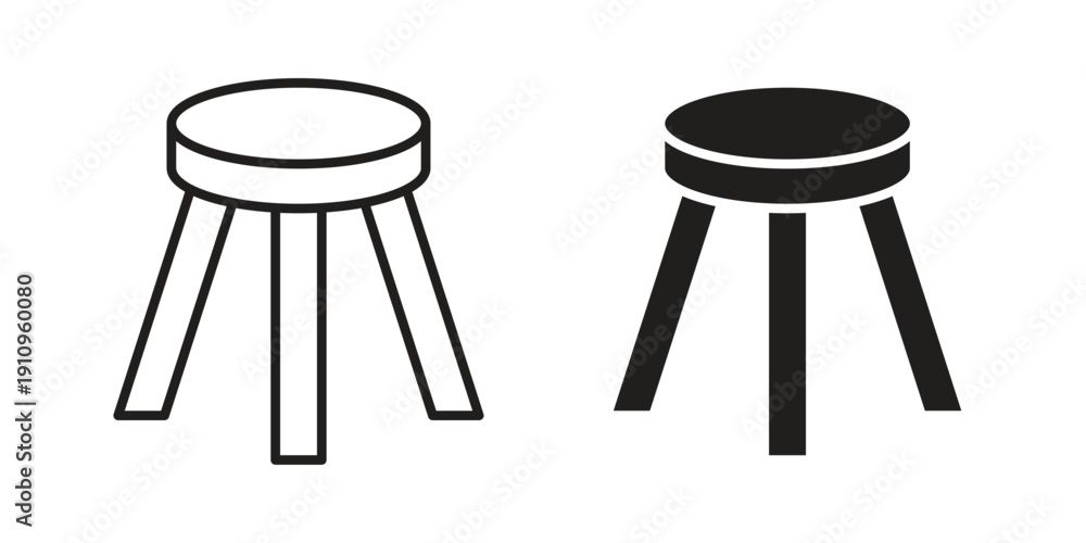 Three legged stool icon illustrations. Pack of vector icons for ui ux #1910960080