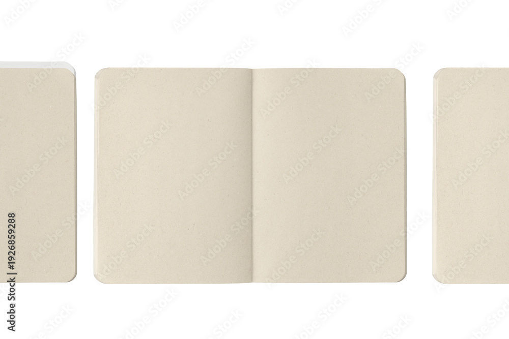 Three open spreads of a kraft paper notebook, side by side #1926859288