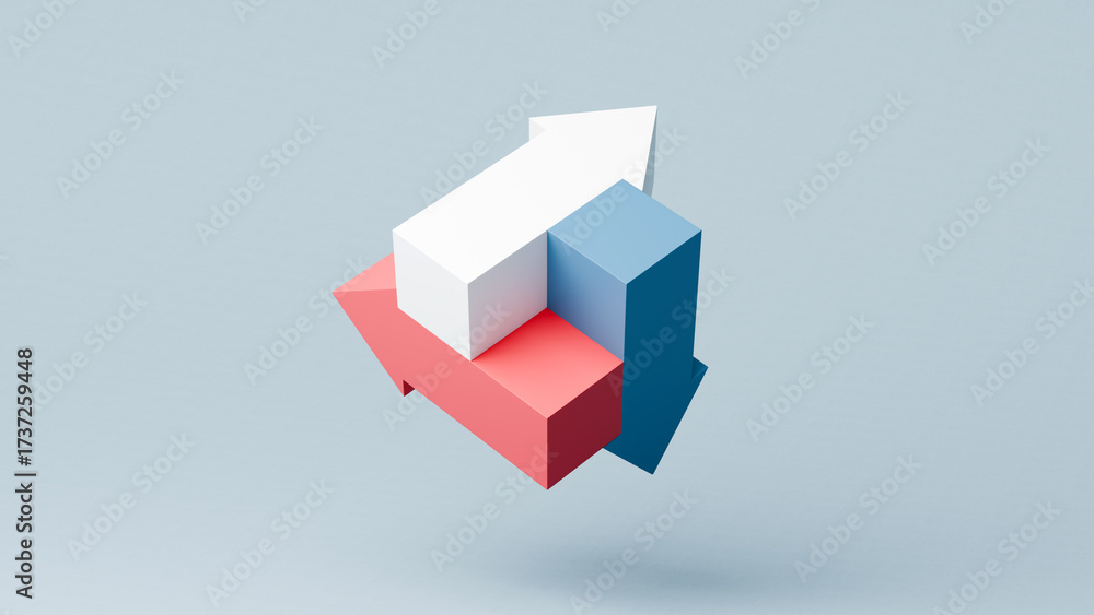 Three overlapping arrows pointing in different directions, business strategy and decision making, 3d render #1737259448