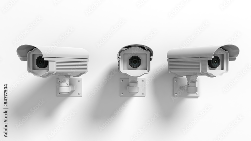 Three security surveillance cameras isolated on white background #84777504
